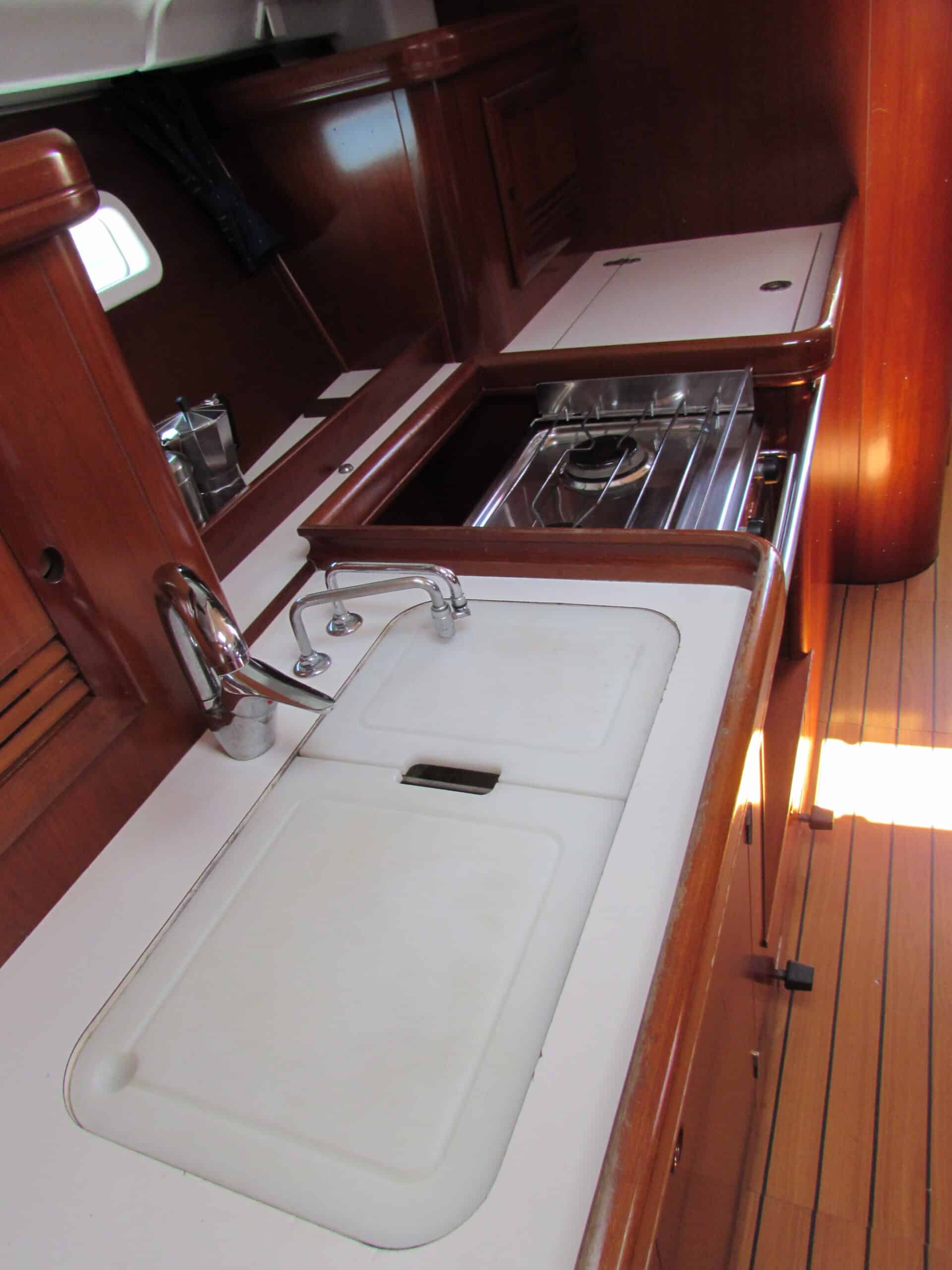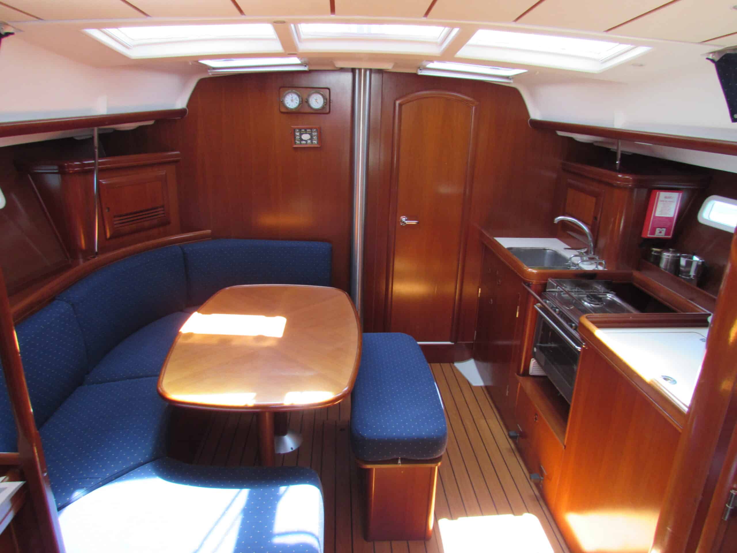 Die Beneteau 393 Clipper Alkyoni empfängt Sie mit einem offenen und einladenden Ambiente. Die Kombüse ist komplett ausgestattet und bietet alles, was Sie zur Zubereitung von Mahlzeiten benötigen. Hier können Sie frühstücken, einen Nachmittagskaffee genießen oder sich bei Sonnenuntergang einen erfrischenden Cocktail mixen. Der Salon lädt zum Entspannen nach einem Tag auf See ein. Am Tisch können Sie sich versammeln, Geschichten austauschen oder den nächsten Inselstopp planen. Das Interieur besticht durch Schlichtheit und Komfort und schafft so ein wohnliches Gefühl, während Sie durch einige der schönsten Gewässer der Welt reisen.